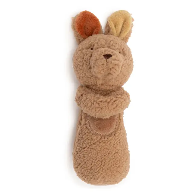Hoe lief is deze kleine kangoeroe rammelaar uit het Kangaroots thema? Het zachte coral fleece en velvet maken hem fijn om vast te houden, terwijl de twee verschillend gekleurde oortjes zorgen voor een speels detail.